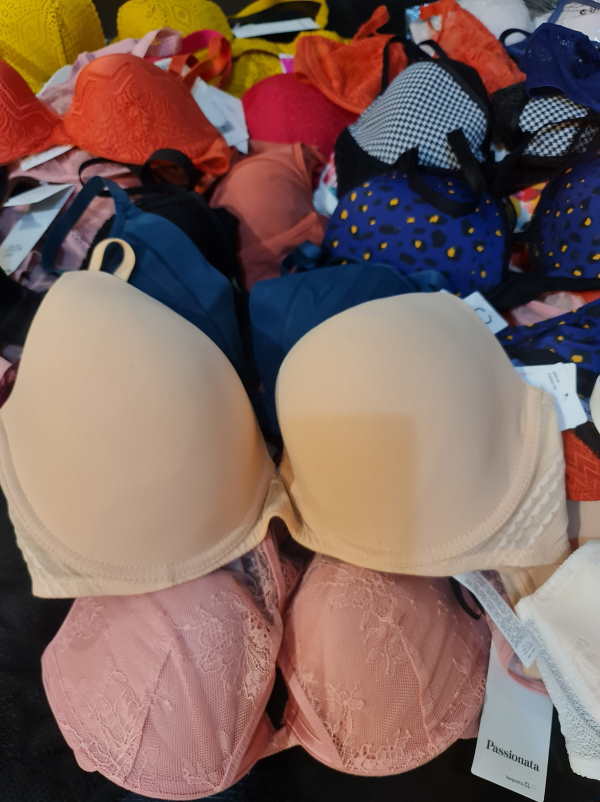There are models of current year collection in the lot. Right now the majority is padded bras or spacer padded bras. There are different colors in the lot: basic colors, such as beige and black plus colorfull models. The sizes of the bras start with 65 D, up to 90D. Cups A are less then 3%. The majority of the cups C, D, E, there is smaller amount of very big cups such as F, G. The size distributiong of Chantelle/Passionata lot is stated bełow.